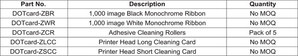 The specially modified DOTcard System Smart Printer is one the most user friendly and reliable thermal transfer card printers and can print the whole range of DOTgroup Cable Markers, Core Idents, Valve Tags and plain cards making the production of labels quick and easy. With a compact and optimised design the specially modified DOTcard System Smart Printer boasts features to include a real-time status two line LCD display and both the input and output hoppers being conveniently located on the front. The combined ribbon and cleaning roller cartridge makes changing the ribbon both quick and easy, coupled with an enhanced printing speed of 720 monochrome cards per hour. Key features & specifications include: