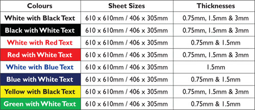 The DOTlaser Flexible Engraving Laminate is a UV stable micro-surfaced impact acrylic sheet, which is suitable for exterior use. Any size (up to 610 x 610mm), shape and quantity of our DOTlaser FEL engraved labels can be made to order at our in-house production facility or manufactured on site using the DOT-LEM35 Laser Engraving Machine. The flexible alternative to the DOT-REL Rigid Engraving Laminate. The material was tested for flammability by Underwriters Laboratories and is rated 94 HB on the UL 94 test. The material was judged as not contributing to the combustion of the base material. The DOTlaser FEL has an operating temperature range of -40° to +80° Celsius and can be applied at temperatures as low as +5°C. This gives a wide range of conditions under which the DOTlaser FEL can be used. The adhesive combines a very high level of adhesive peel and shear performance and has a continuous operating temperature of 93°C (199°F). The adhesive used on the DOTlaser FEL provides good adhesion to both high and low surface energy substrates and has very good UV resistance, as well as, good resistance to both solvents and plasticisers. The excellent initial tack ensures that a bond of good integrity is achieved soon after application. DOTlaser Flexible Engraving Laminate features & benefits: • Ability to engrave 2D, QR, code 39 and code 128 barcodes • UV stable material suitable for exterior use • DOTlaser FEL rated 94 HB on the UL 94 flammability test • Superior, high performance self-adhesive backing • Precision engraving accurate to 1/10th of a millimeter • Company logo’s easily engraved onto any label • Any size (up to 610 x 610mm) and any shape - with or without fixing holes • Labels engraved on sheets - easy to sort, quick to apply and fewer lost labels • Extensive selection of both colour combinations and thicknesses available ![]() Other colours and sheet sizes available on request, please contact us for further information. DOTlaser Flexible Engraving Laminate Labelling Service Any size (up to 610 x 610mm), shape and quantity of our DOTlaser engraved labels can be manufactured to order and delivered direct to site. Simply send the label information electronically, in either Excel or Word, to our in-house production facility and, dependent on quantity required, delivery should take place within 24 - 48 hours. Information can be typed from drawings by arrangement. ![]() ![]() ![]() |