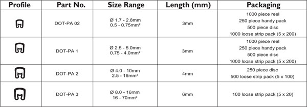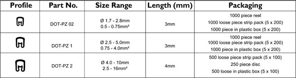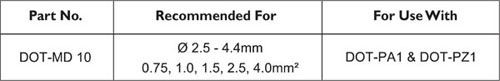 ![]() DOT-PC Open Style Manual Markers • Open marker sleeve for post-termination marking • Securely positioned with the help of special legs • Fast, snap-on installation • Designed for electrical, pneumatic, hydraulic etc., applications • Designed to interlock when fitted enabling easy alignment of multiple character markings • High environmental tolerance and excellent legibility Specification